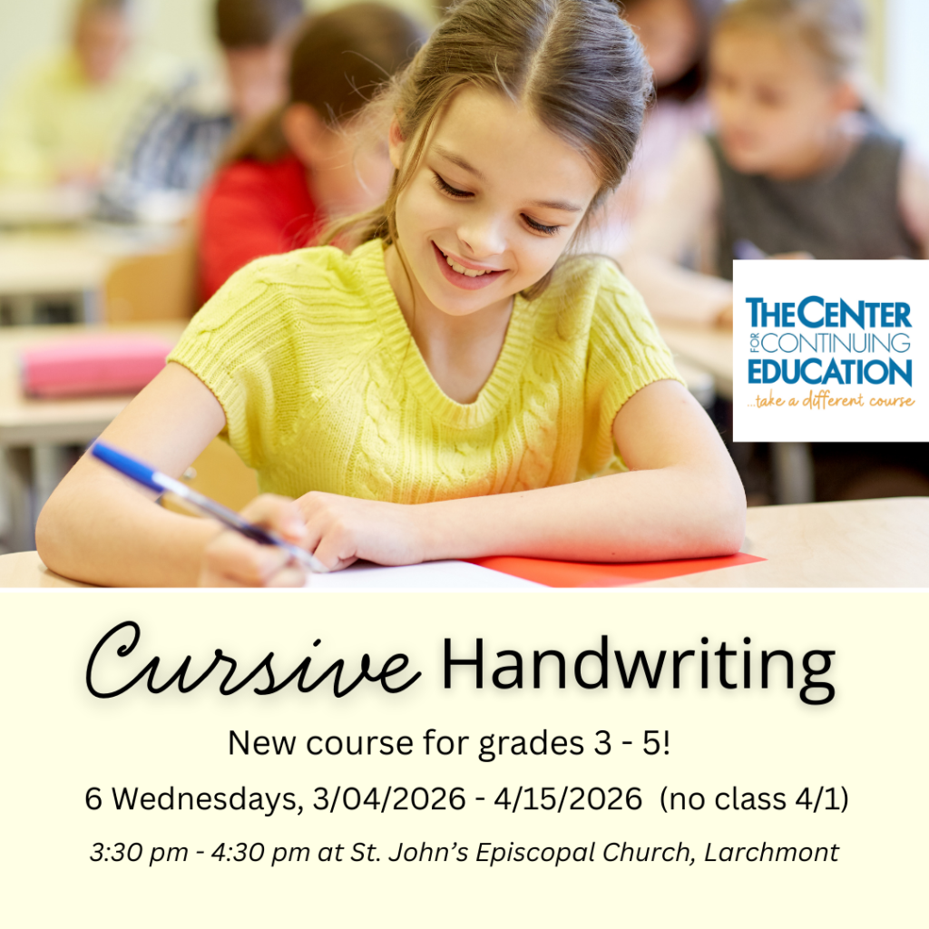 | A Comeback to Cursive Handwriting (Grades 3-5) | 3/4/2026 – 4/15/2026 | W | 3:30 PM – 4:30 PM | Register |